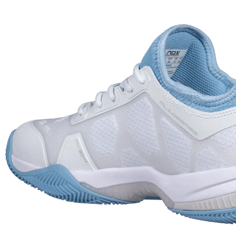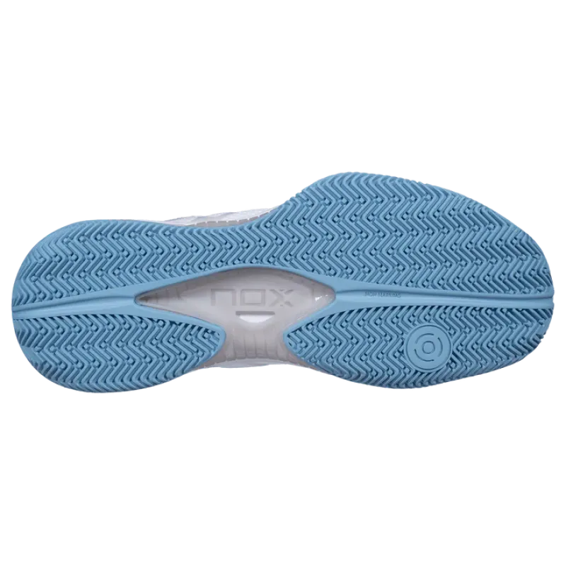 The outsole is designed by combining a classic herringbone pattern with additional micro-spikes. Such a combination ensures excellent grip on various padel surfaces and allows maintaining a good balance between stability, sliding, and movement control.