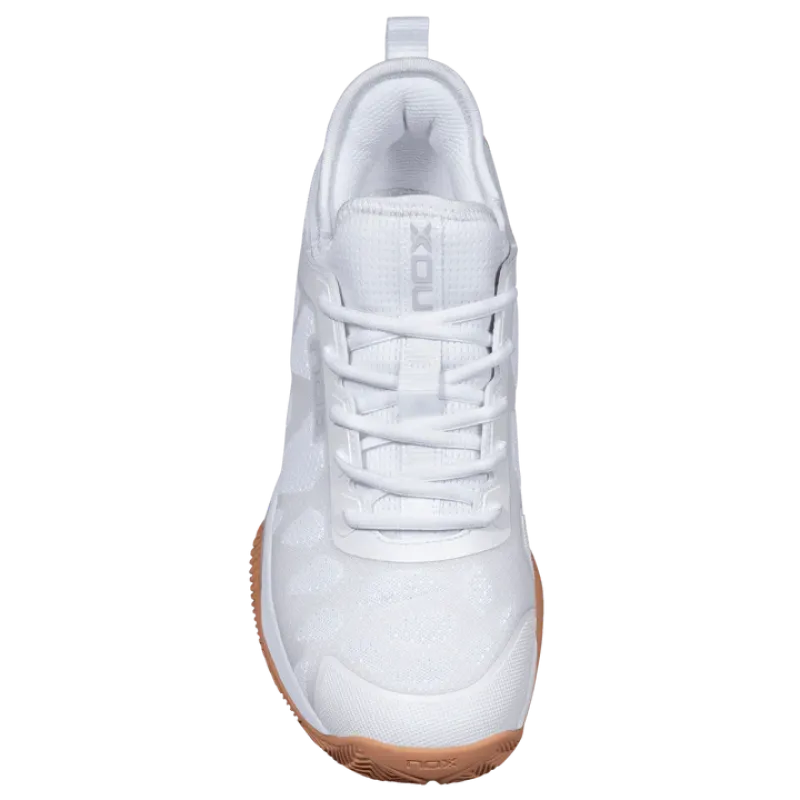 The outsole was designed by combining the classic „herringbone“ (herringbone) pattern with additional microprotectors. Such a combination ensures excellent grip on various padel surfaces and allows maintaining a good balance between stability, sliding, and movement control.