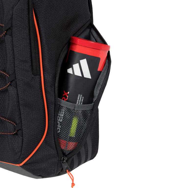 This backpack is designed for players who like to have their sports equipment and work or study essentials in the same bag. Its main compartment features a “U” shaped zipper, allowing easy access to every corner. It has a padded compartment designed to safely fit a laptop. The backpack features an elastic drawstring on the back, allowing you to adjust the volume of the backpack depending on how full it is. Additionally, there is one pocket on each side, also with a zipper, to put various small personal accessories.