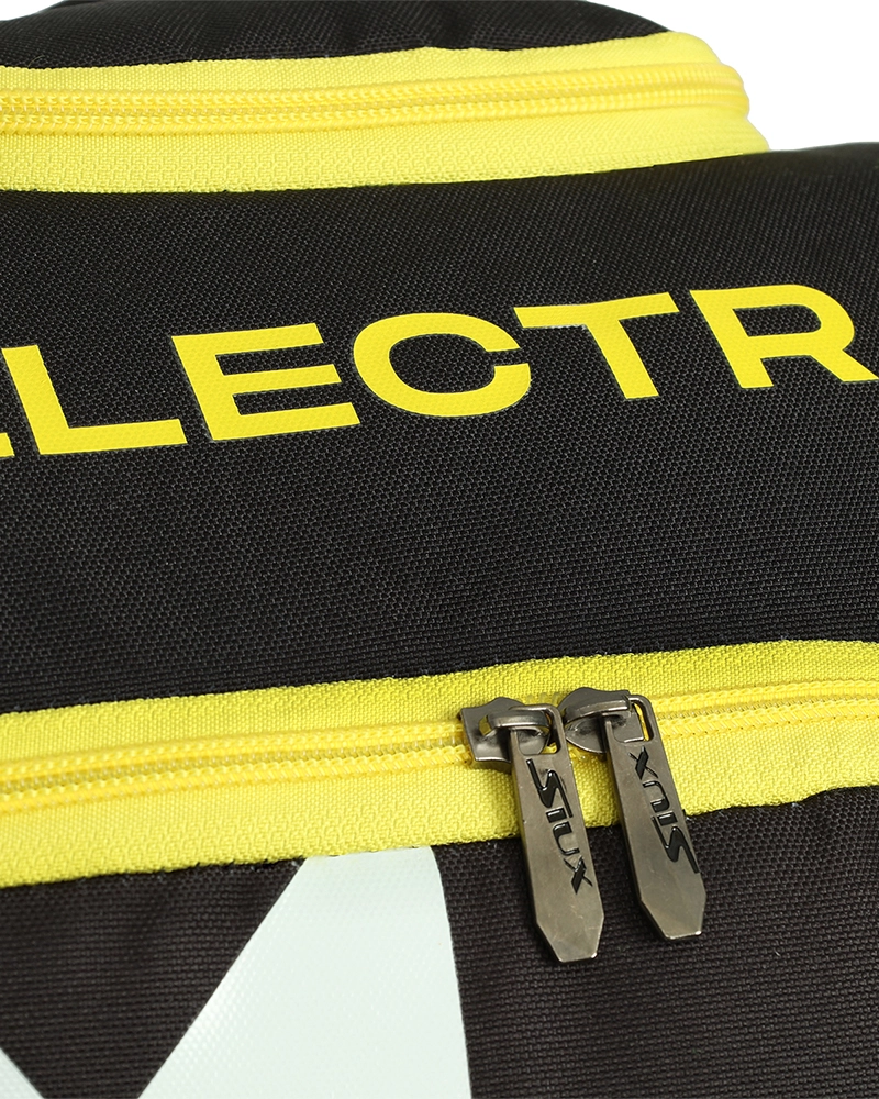 This bag is designed for players who like to bring a lot of sports equipment to their training sessions or matches. The sides of the racket compartment are rigid to avoid impacts and have sections where you can organize your belongings. The central compartment has two side sections for storing rackets, as well as zippered pockets on the sides. There is also a pocket at the top for storing small personal items. The back area and two handles are padded, making it very comfortable to carry as a backpack.