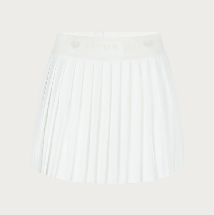 The classic pleated design with embroidered hearts is a charming style that stands out on the court.