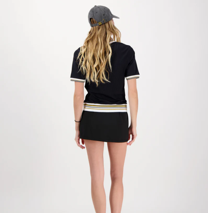 Apdailai pasirinktas kontrastinis dryžuotas mezginys, kuris suteikia subtilios prabangos pojūtį. Nesvarbu, ar esi padelio, teniso, ar tiesiog gero stiliaus gerbėja – Emilie Top pritaikytas tavo žingsniui.
